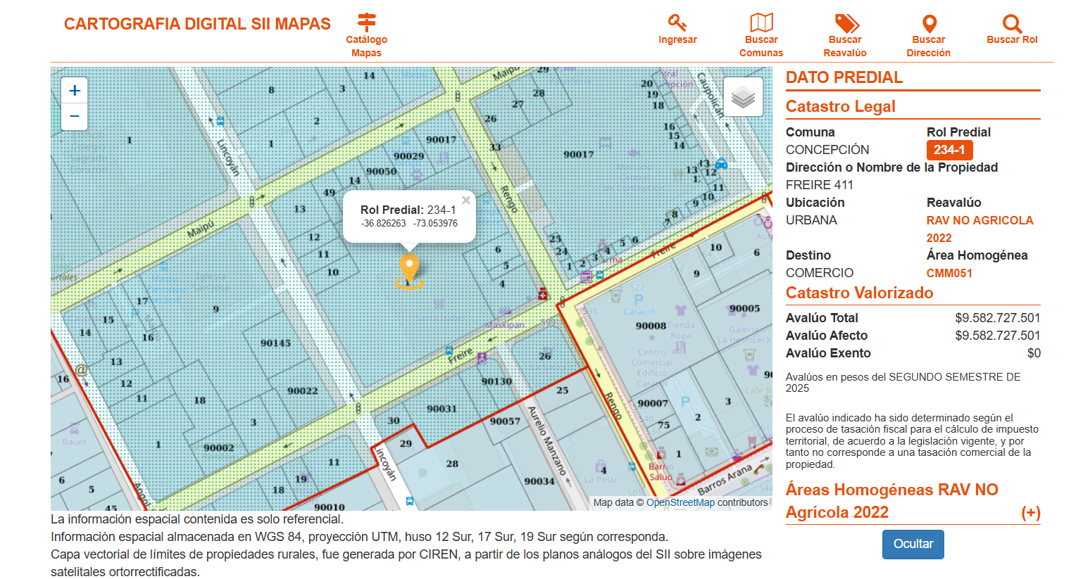 Inmueble ubicado en calle Freire N° 411, LOTE UNO, sector centro, de la ciudad y comuna de Concepción. El inmueble se encuentra inscrito a fojas 10050 número 2312 correspondiente al Registro de Propiedad del año 2022, del Conservador de Bienes Raíces y Comercio de Concepción. Rol de avalúo 234-1 de la comuna de Concepción.
