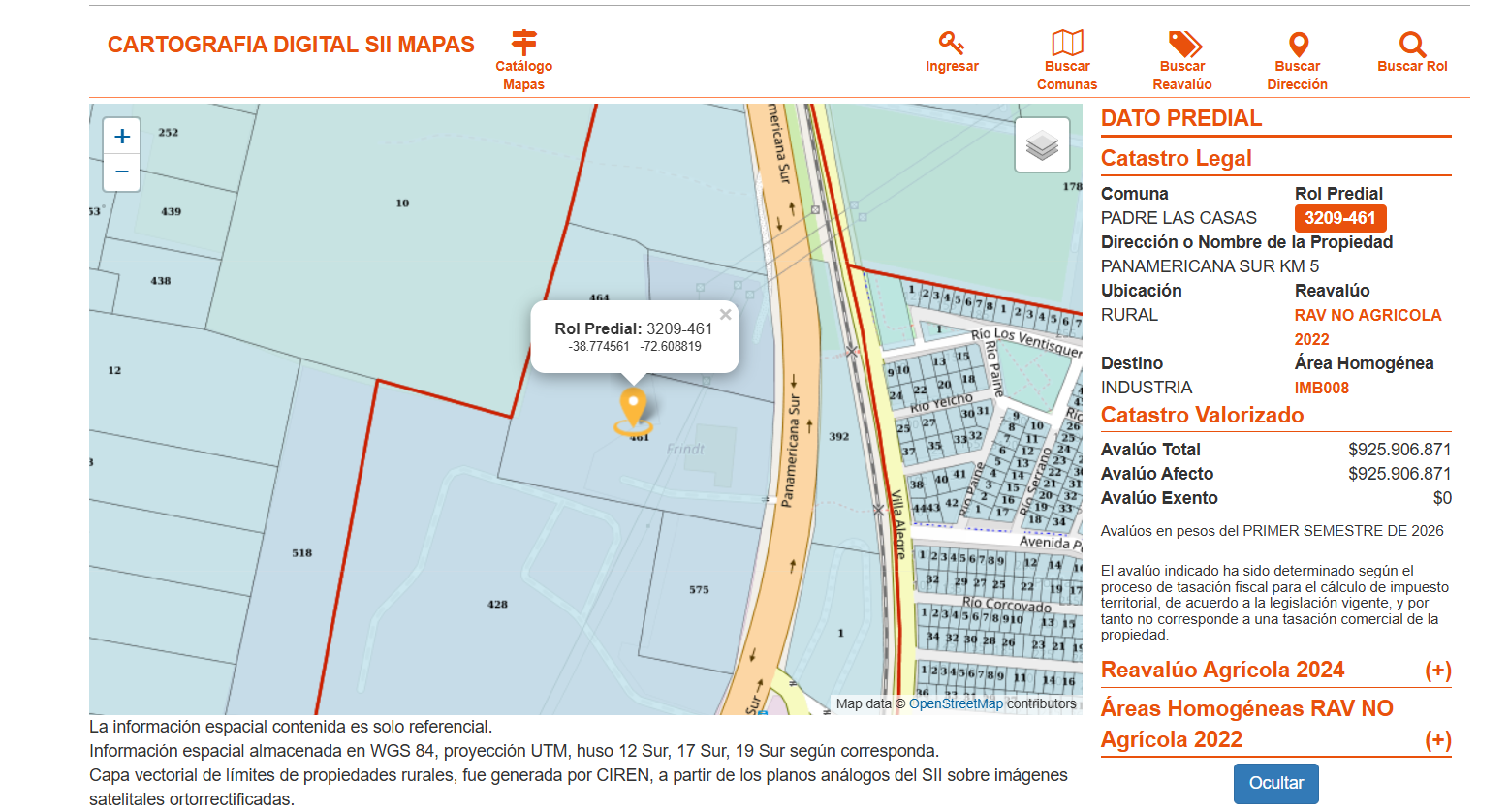 Inmueble ubicado en Panamericana Sur km 0.5, comuna de Padre Las Casas, Región de la Araucanía, el que se encuentra compuesto de dos terrenos: