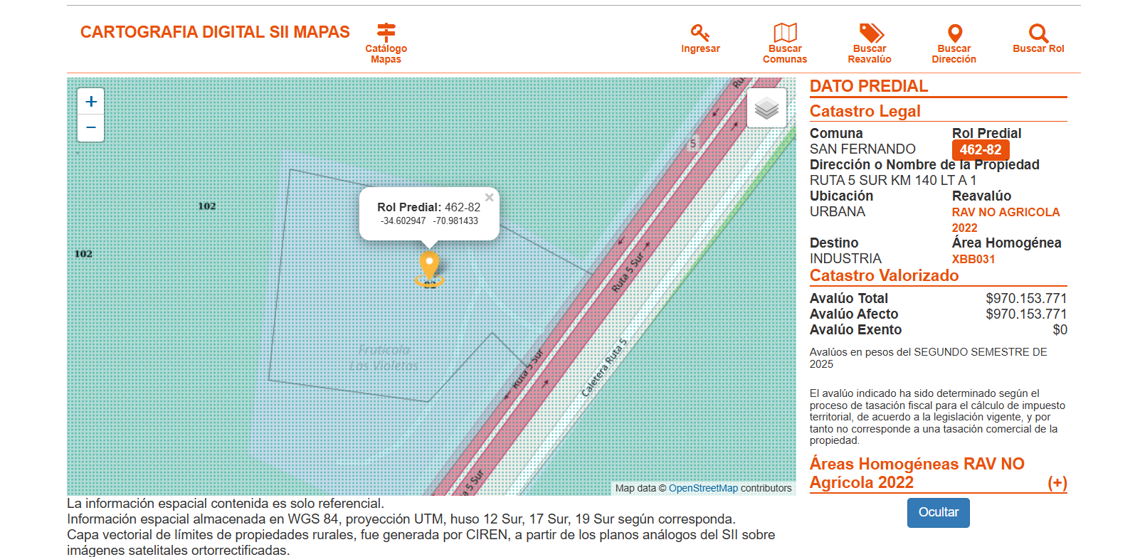 a) Lote A-Uno ubicada en Camino Longitudinal (Ruta 5 Sur) Km 140, Comuna de San Fernando, VI Región, con una superficie de 1,36 hectáreas y que corre inscrito a fojas 1152 N° 1348 del Registro de Propiedad del año 2008 del Conservador de Bienes Raíces de San Fernando.