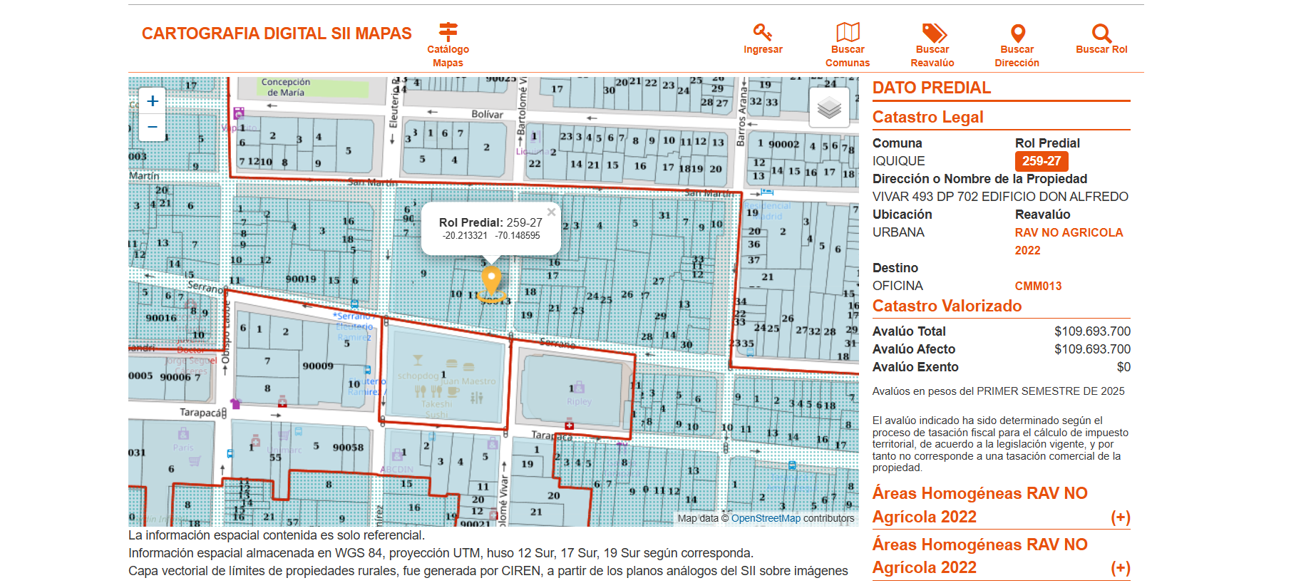 Recinto B número 702, del Séptimo Piso del Edificio “Don Alfredo”, ubicado en calle Vivar número 493 de la comuna de Iquique. Inscrito a fojas 4154 número 5217 del Registro de Propiedad del año 2019, del Conservador de Bienes Raíces de Iquique. Rol de avalúo 259-027, de la comuna de Iquique.