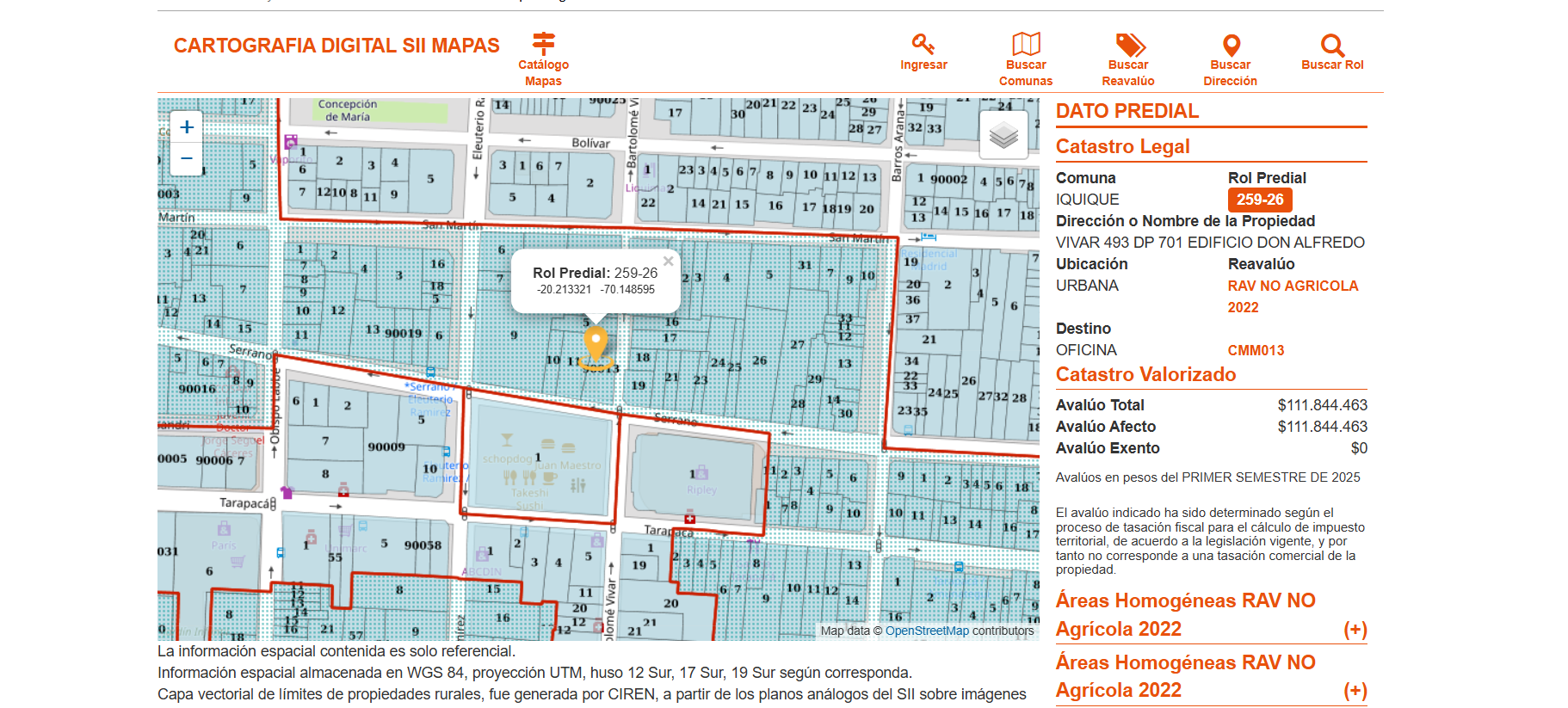 Recinto A número 701, del Séptimo Piso del Edificio “Don Alfredo”, ubicado en calle Vivar número 493 de la comuna de Iquique. Inscrito a fojas 4154 número 5217 del Registro de Propiedad del año 2019, del Conservador de Bienes Raíces de Iquique. Rol de avalúo 259-026, de la comuna de Iquique.