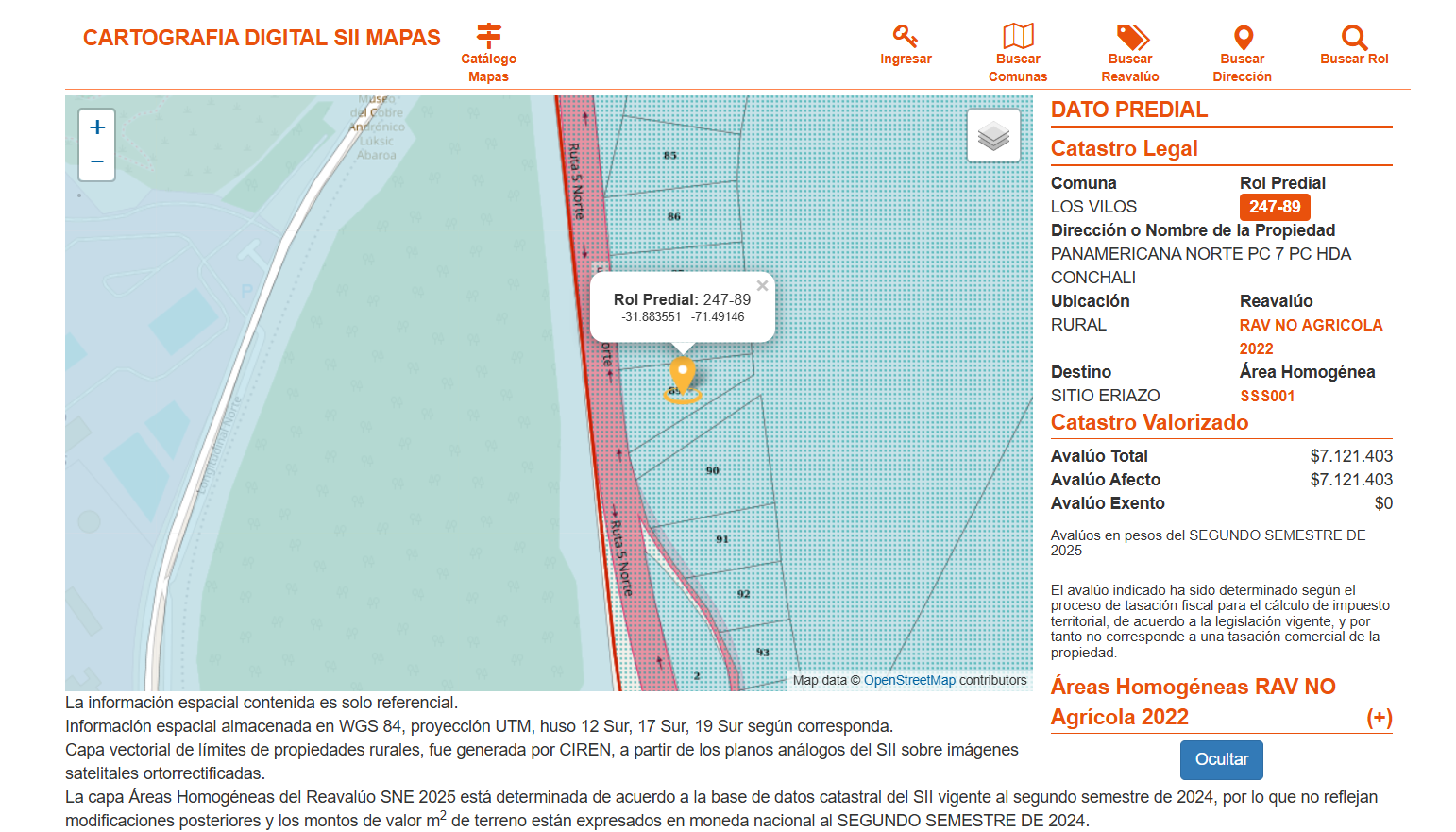 Terreno ubicado en Panamericana Norte, Lote 7, que formo parte del predio denominado Resto del Fundo Conchalí, comuna de Los Vilos, provincia de Choapa, Región de Coquimbo. El inmueble se encuentra inscrito a fojas 311 vuelta, número 375 correspondiente al Registro de Propiedad del año 2019 del Conservador de Bienes Raíces de Los Vilos. Rol de avalúo fiscal 247-89 de la comuna de Los Vilos.
