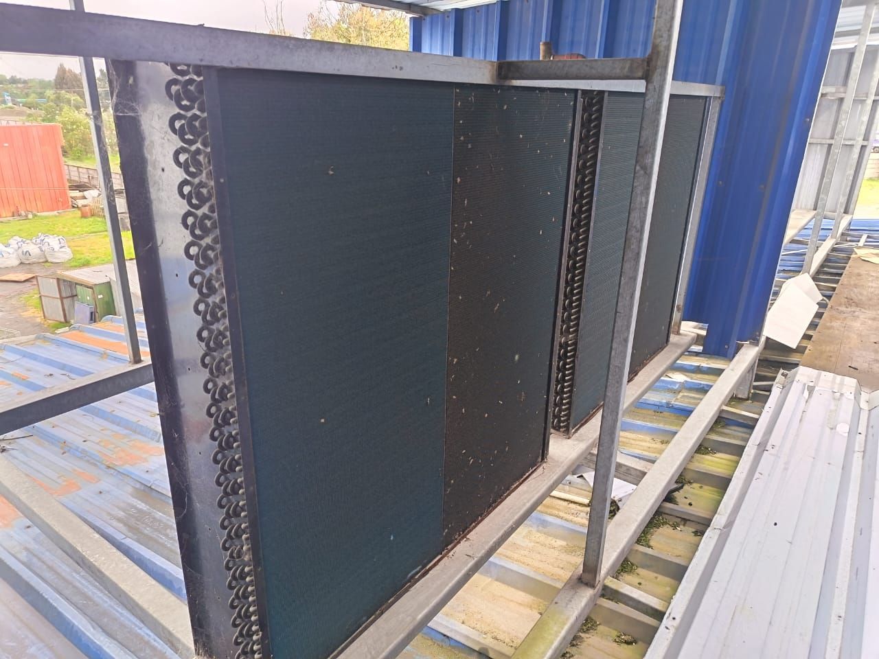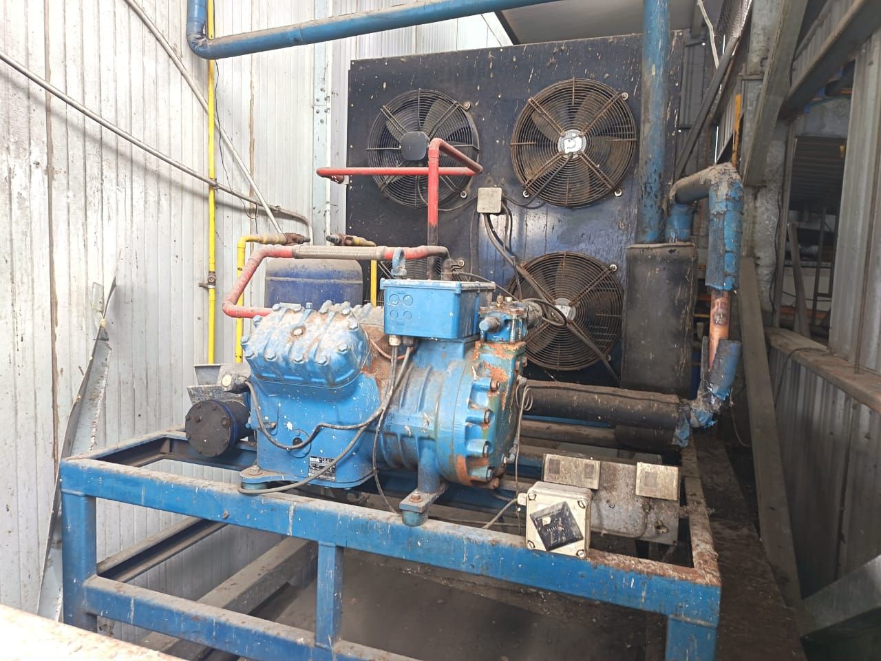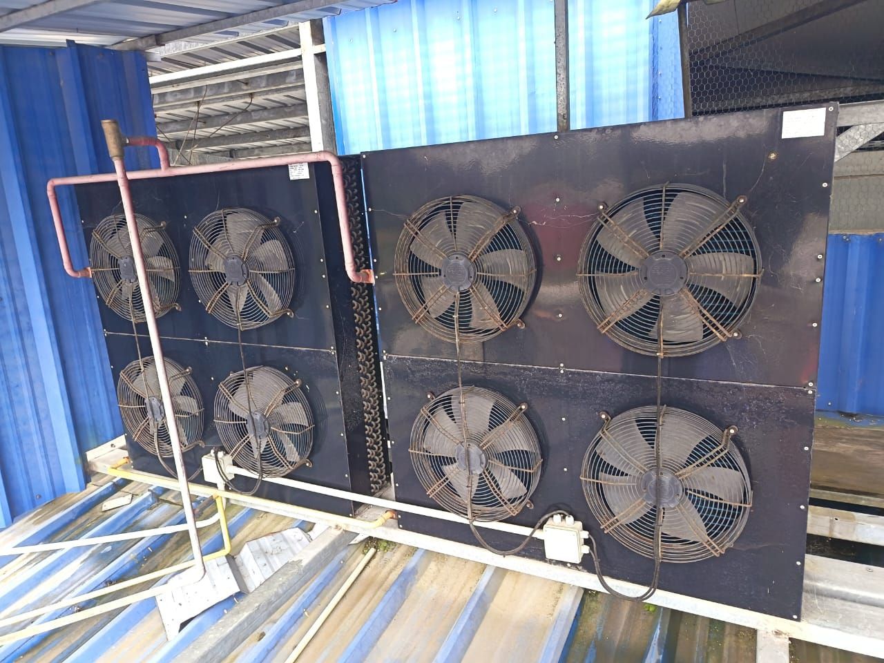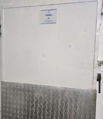 LOTE 53: Túnel de congelación N°1: La cámara de frio nr 1 con puerta corrediza. 2 evaporadores industriales. 3 condensadores industriales. 2 compresores industriales. 1 tablero eléctrico .
