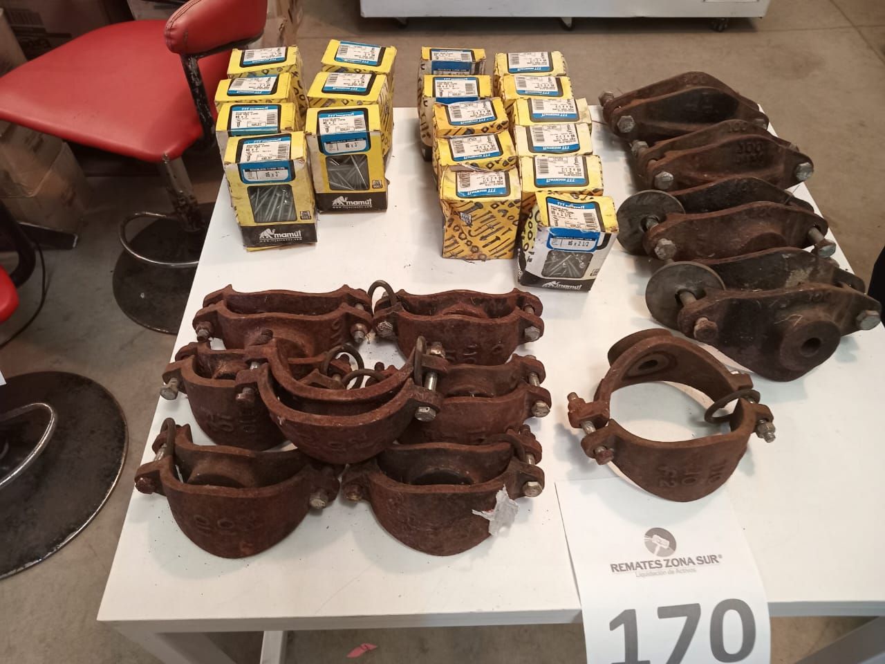 LOTE 170: Abrazaderas de hierro y Tornillos Roscata.