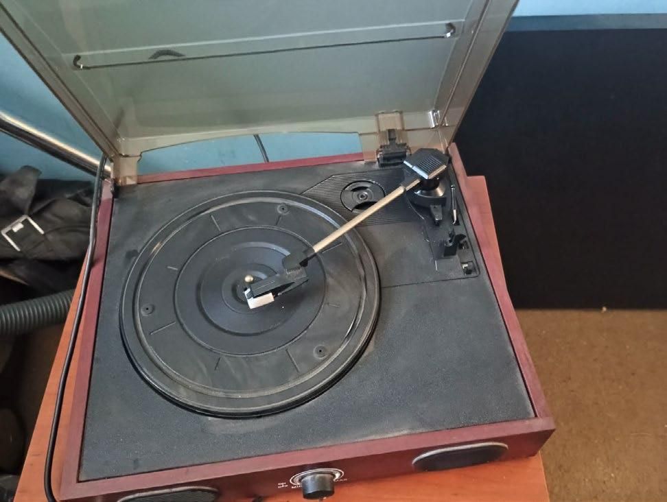 Mesa para 4 personas café claro, patas grises metálicas. 04 Sillas de fierro y madera. Silla escritorio negra ajustable. Puff pequeño 2 morados+ 2 blancos. Mesa de centro pequeña café oscuro. Televisor RCA 32". Rack televisor, café oscuro, bajo para TV de 32". Tocadiscos café simil madera. 02 Discos de colección Louis Armstrong & King Oliver: Disco doble; Elvis Presley:Elvis Rock). Aspiradora Somela Maxi Clean 1600 Wmax. Lámparas de pie color gris con lámpara blanca (doble). Lampara de sal de escritorio. Plancha Groven. Batidora. Parrillera eléctrica. Masajeador facial nuevo Mono Tahiti. Secador pequeño.