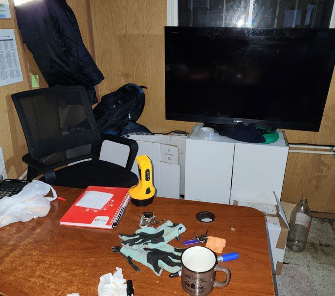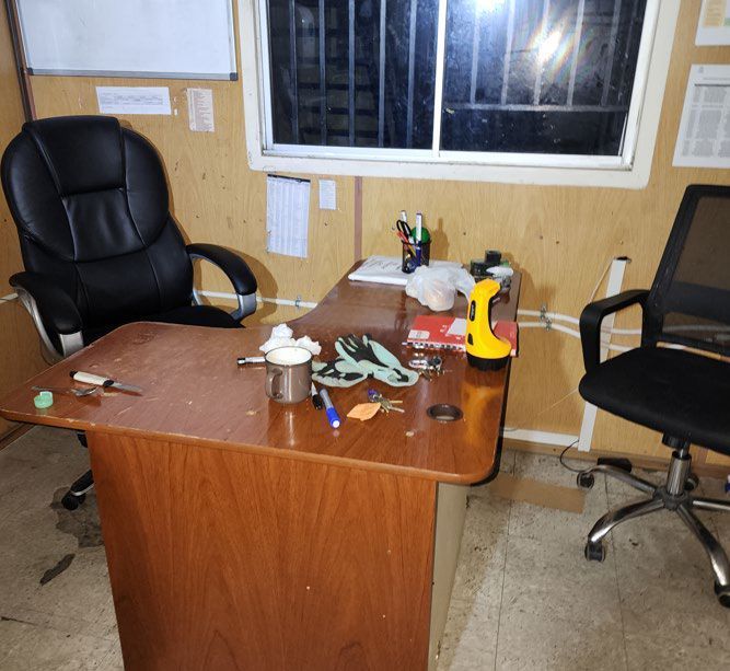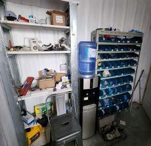 LOTE 132: Oficina y taller de mantención con insumos y repuestos varios.